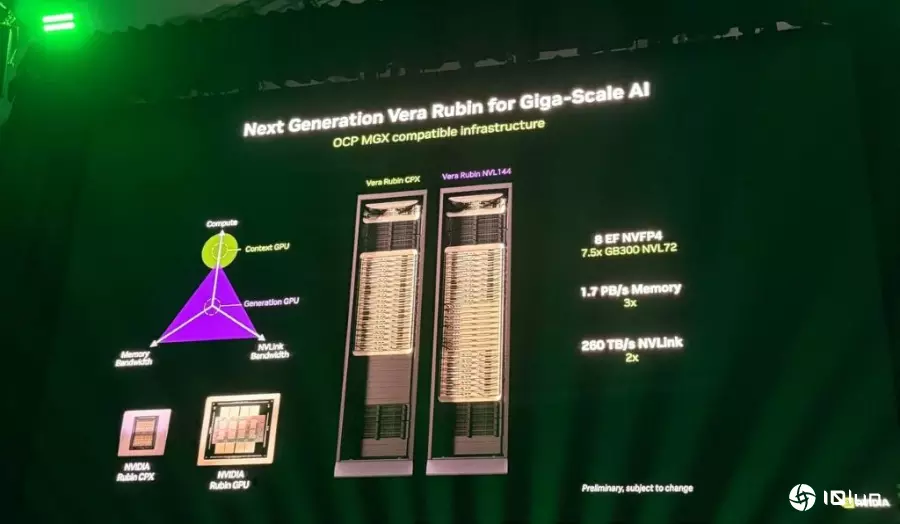 2026年下一代Vera Rubin架构为了解决场景处理的挑战,英伟达宣布下一代架构Vera Rubin将于2026年下半年推出。该架构将部分贡献给OCP社交媒体,并与现有的GB200 OCP基础设施和机架兼容。
