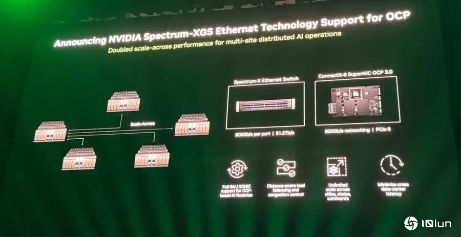 至于,甲骨文(Oracle)及OpenAI共同规划的星际之门 (Stargate) 数据中心是世界上最大的AI超级计算机基础设施之一,其第一个数据入口就是采用Spectrum和OCP技术构建,完成了95%的有效带宽和零应用延迟。其他采用英伟达Spectrum XGX技术的数据中心,在采用OCP软件和标准下,允许多站点进行连接,跨越不同地理区域,甚至整个大陆进行百万级GPU规模的训练。
